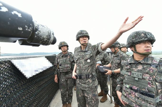 [서울=뉴스핌] 박성준 기자 = 김명수 합참의장이 2일 육군 9사단 강안경계부대와 1방공여단 방공진지를 방문해 대비태세를 직접 점검하고, 현장에서 핵심적인 역할을 수행 중인 장병들을 격려했다.