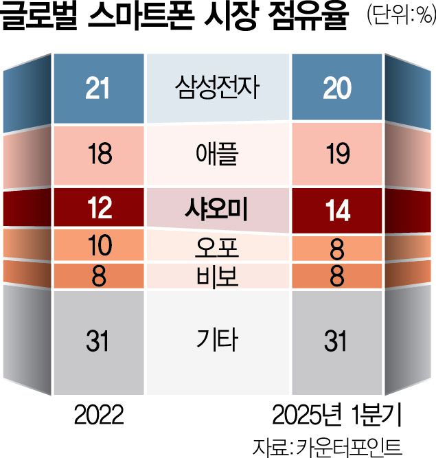 스마트폰을 중심으로 ‘인공지능 사물인터넷(AIoT)’ 생태계 구축에 나선 전략이 실적에 기여했다는 평가가 나온다. 샤오미 매출의 약 40%는 스마트폰 사업 부문이며 뒤이어 가전제품과 기타 사업이 약 22%를 차지하고 있다. 시장 초기 ‘가성비’로 승부하던 샤오미는 2020년 이후 중저가 스마트폰 수요가 급증하면서 중국 내 스마트폰 시장에서 애플을 누르고 시장 1위로 올라섰다. 2022년 이후에는 자체 개발한 고성능칩 ‘Xring O1’을 탑재한 15S 프로 모델을 내놓으며 애플의 최신 A18 프로 칩과 프리미엄 스마트폰 시장을 두고 경쟁하고 있다. 미국 투자사 제프리스는 최근 샤오미의 목표주가를 69.50홍콩달러에서 73홍콩달러로 상향 조정하며 주가 상승 여력이 43%에 달한다고 진단했다.