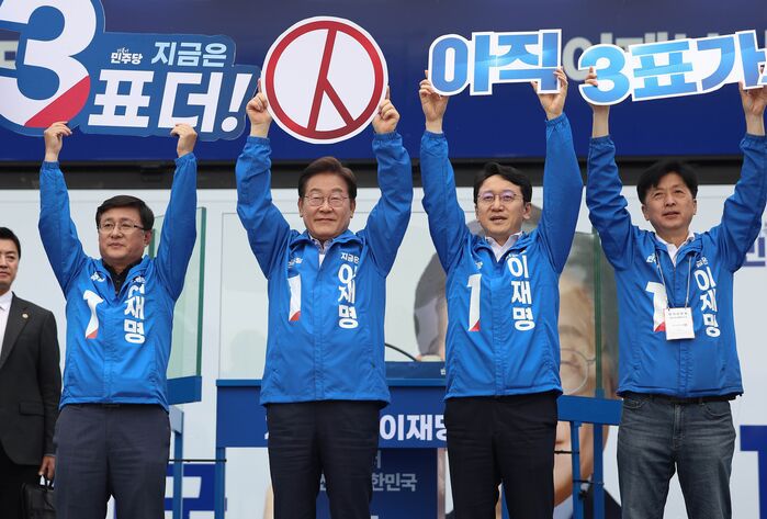 '이재명 후보에게 3표가 부족하다'는 구호를 오늘(2일)까지도 되풀이하고 있습니다.
