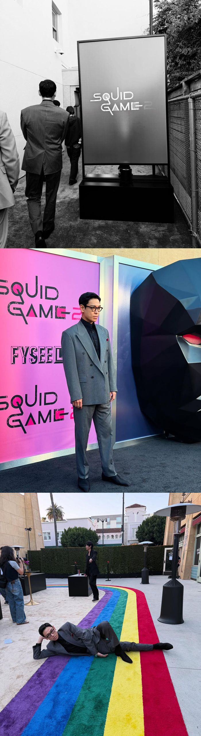 공개된 사진 속 최승현은 정장을 갖춰입고 변함없는 미모를 뽐내는가 하면 '오징어게임2' 세트장을 본따 만든 장소에서 포즈를 취해 눈길을 끈다.