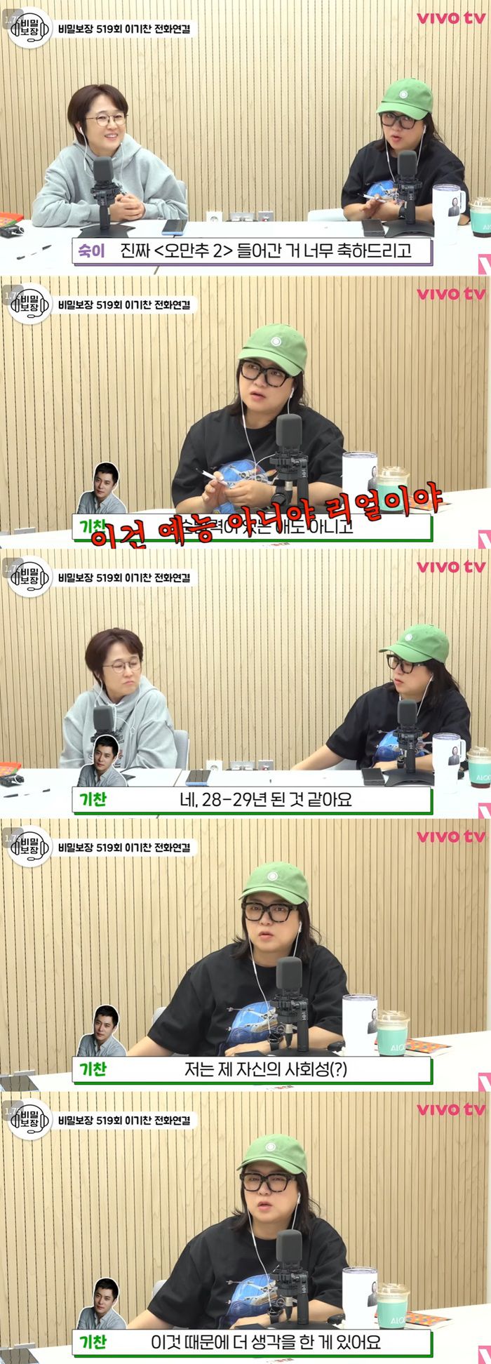 이날 김숙과 송은이는 이기찬에게 전화를 걸어 KBS Joy, KBS2TV '오래된 만남 추구' 2기(이하 '오만추2') 합류를 축하했다.