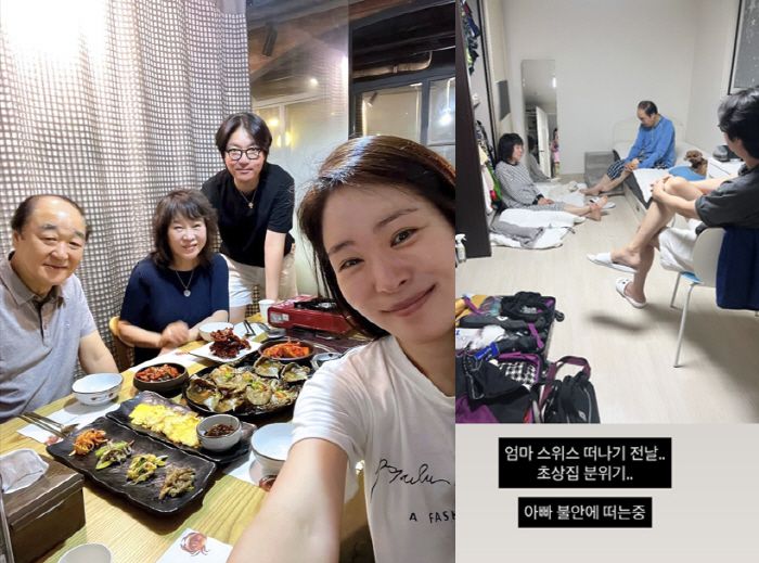 미자는 2일 "엄마 스위스 떠나기 전날. 초상집 분위기"라며 사진을 게재했다.