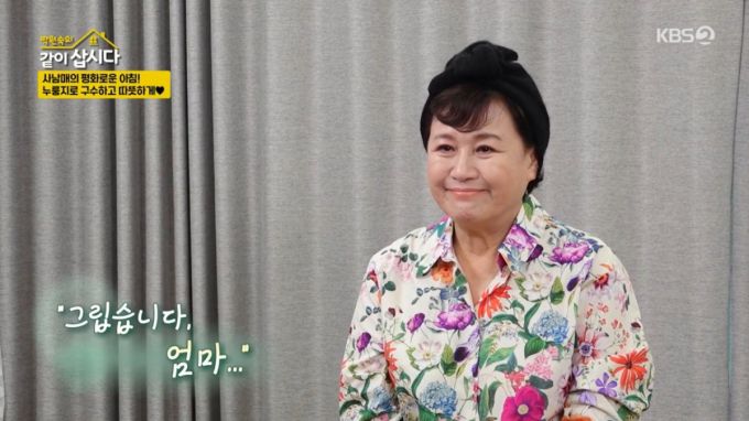 이때 박원숙은 "엄마가 호박을 두껍게 썰어서 새우젓 넣고 끓인 찌개가 그립다. 집에 가면 엄마가 항상 해줬다"며 "지금 생각해보니 그때 엄마 집에서 자고 갔으면 싶다. 맨날 바쁜 사람이었다"며 어머니가 돌아가시기 전을 그리워했다.