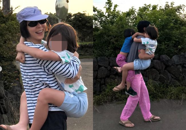 공개된 사진에는 제주도에서 평화로운 시간을 보내고 있는 김나영과 두 아들이 담겼다. 특히 김나영과 5년째 열애 중인 마이큐도 함께 포착돼 눈길을 끈다.