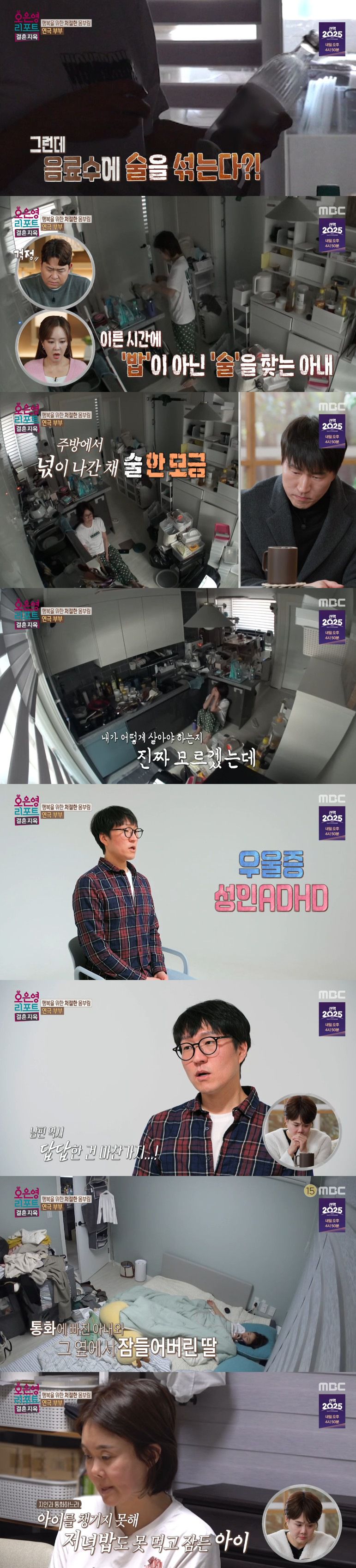 아내는 홀로 "멍청하다", "내가 어떻게 했어야 했는지 진짜 모르겠는데 아무도 안 알려줘"라고 외쳤고, 이후 남편은 "(아내가) 2022년 3월부터 병원을 다니고 있다. 우울증, 성인 ADHD 판정을 받았다"고 밝혔다.