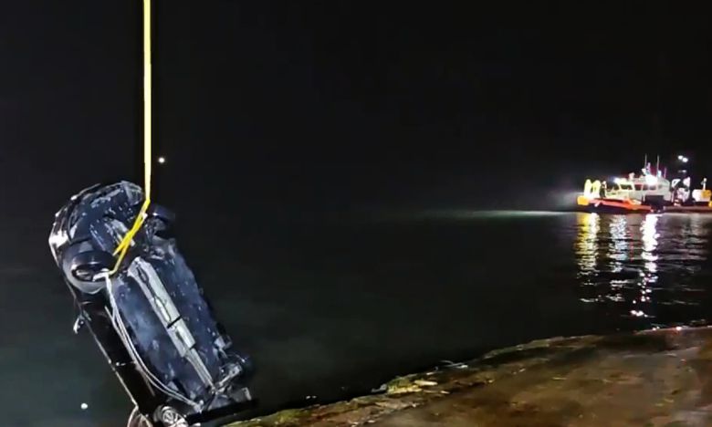 2일 전남 진도군 임회면 진도항 인근 해상으로 빠진 일가족 탑승 차량이 인양되고 있다. 목포해양경찰서 제공 |
