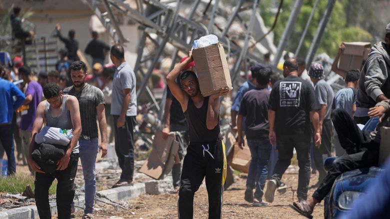 ▲ GHF 배급소에서 구호품 받아가는 팔레스타인 주민