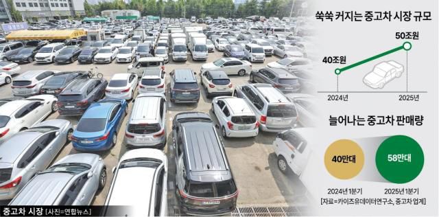 중고차 업계는 올해 관련 시장이 지난해보다 약 25% 성장한 50조원에 이를 것으로 예측한다. 현재 중고차 시장은 케이카, 헤이딜러, 엔카, 리본카, KB차차차 등 다양한 플랫폼과 현대차그룹, 중국 비야디(BYD), 코오롱모빌리티 등이 경쟁하는 구도다. 사업자가 다수 등장하면서 정보의 비대칭성 해소와 가격 경쟁으로 소비자 유입도 활발하다. 실제 카이즈유데이터연구소에 따르면 1분기 국내에서 판매된 중고차는 58만대로 전년 동기(40만대)보다 1.45배 늘었다.