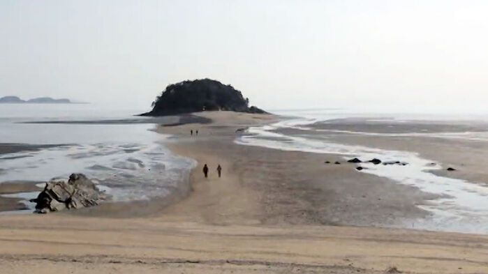 목섬은 간조 때에는 모래길이 드러나지만 난조 때는 육지와 분리되는 무인도입니다.