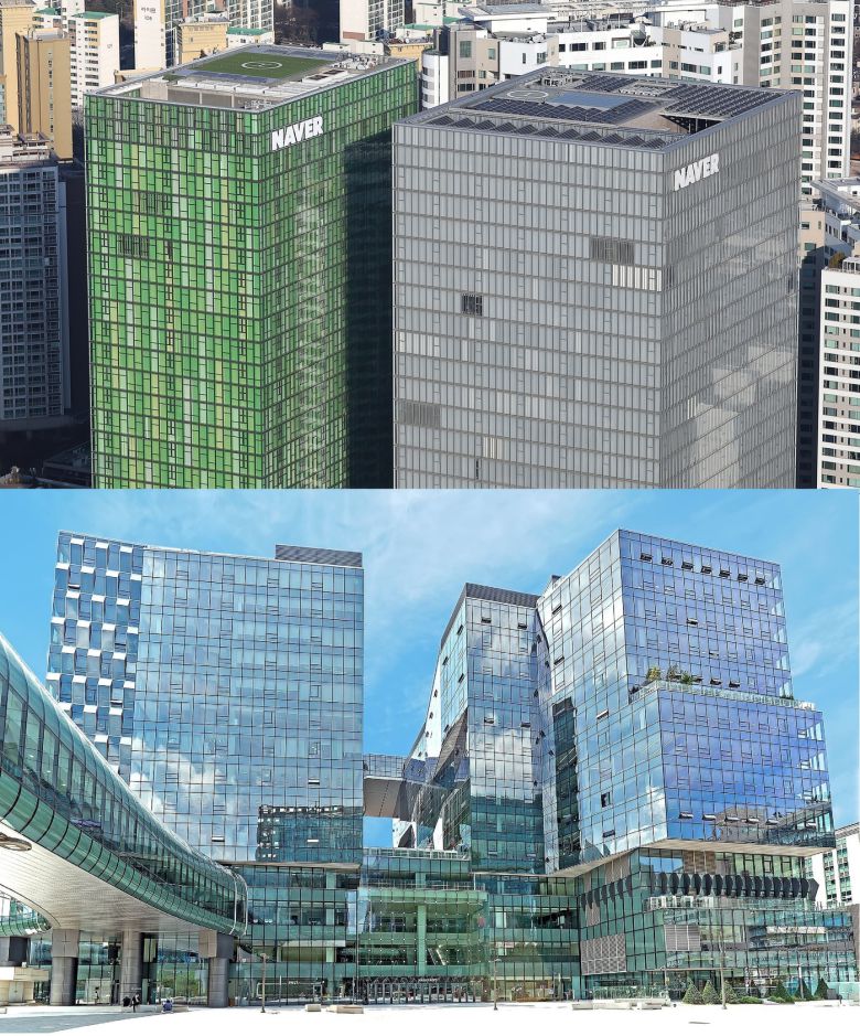 네이버 본사(위)와 카카오 아지트