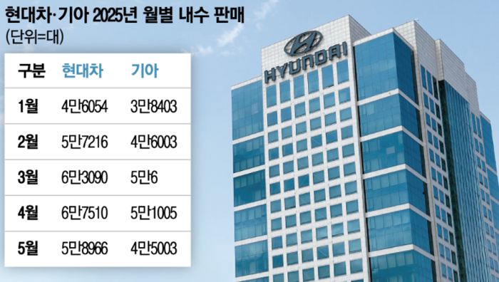 2일 국내 완성차 5개사가 발표한 ‘5월 내수 판매’ 자료에 따르면 현대자동차, 기아, KGM, 한국지엠 등 4곳의 내수 판매량이 지난해 5월에 비해 2.4~39.8% 하락한 것으로 나타났다. 르노코리아만 유일하게 지난해 하반기 출시한 그랑 콜레오스의 판매 호조로 전년 대비 개선된 5월 판매 실적을 발표했다.