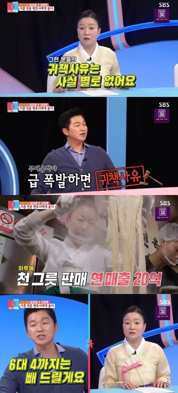 연매출 20억의 '이모카세' 김미령 셰프가 재산 분할 비율에 충격 받았다.