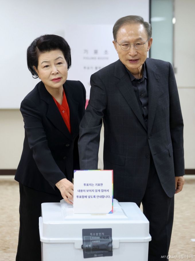 이 전 대통령과 김 여사는 이날 오전 서울 강남구 논현1동 제3투표소에서 투표를 했다.