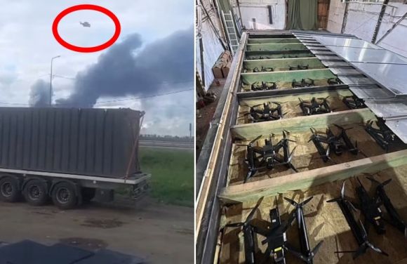 SBU가 공개한 사진에서는 트럭 내부에 실린 자폭 드론 117대의 모습을 볼 수 있다. 검은색 드론들은 이동식 목조 상자에 나란히 배치돼 있으며 우크라이나군은 이 위에 구조물을 얹어 드론들을 은닉한 것으로 추정된다.