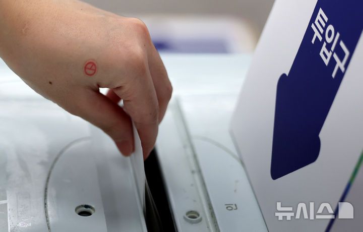 [대구=뉴시스] 이무열 기자 = 제21대 대통령 선거일인 3일 대구 중구 성내3동 행정복지센터에 마련된 성내3동 제2투표소에서 유권자가 투표를 하고 있다. 2025.06.03. lmy@newsis.com |