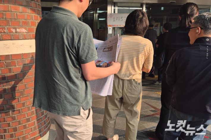 제21대 대통령선거 투표일인 3일 오전, 전북 전주시 완산구 서곡초등학교에 마련된 투표소에서 유권자들이 권리를 행사하기 위해 기다리고 있다. 심동훈 기자 |