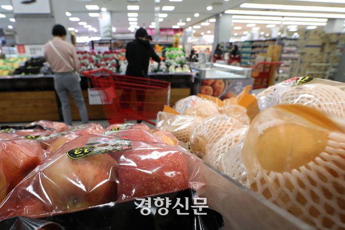 서울 시내 한 대형마트에서 시민들이 과일과 채소를 살펴보고 있다. 조태형 기자 |