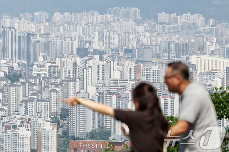 (서울=뉴스1) 민경석 기자 = 지난달 서울 아파트 경매 낙찰가율(감정가 대비 낙찰가 비율)이 97.7%로, 약 3년 만에 최고치를 기록했다. 통상 경매는 감정가보다 낮게 낙찰되는 경우가 많지만, 입찰 경쟁이 치열해지면 낙찰가율이 높아진다. 사진은 3일 서울 중구 남산에서 바라본 시내 아파트 단지 모습. 2025.6.3/뉴스1