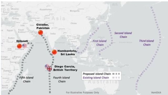 그 바깥인 제2도련선은 일본 이즈반도-괌-사이판-인도네시아를 잇는 선이며, 제3도련선은 가장 바깥인 알류샨 열도-하와이-뉴질랜드를 연결한 선이다.