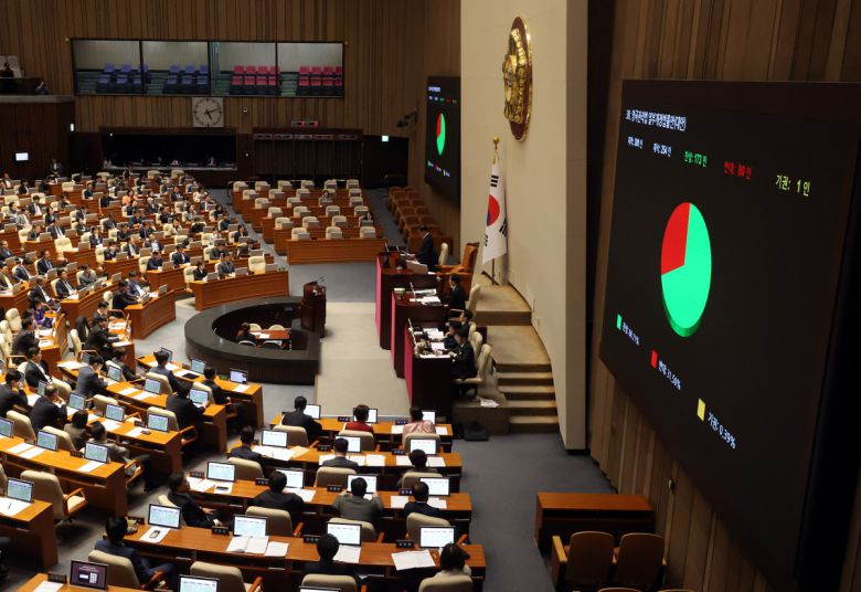 우원식 국회의장이 지난해 11월 서울 여의도 국회에서 열린 제418회국회(정기회) 제13차 본회의에서 양곡관리법 일부개정법률안(대안) 가결을 선언하고 있다. 2024.11.28.