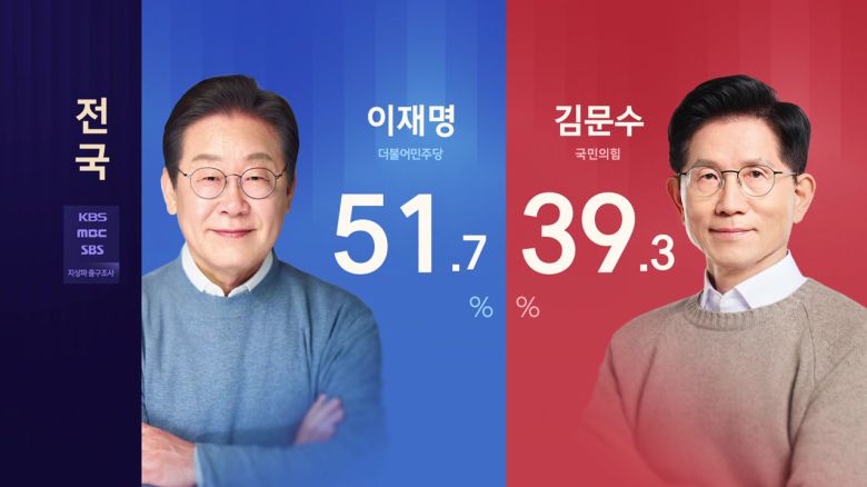 [출구조사] 이재명 51.7% 김문수 39.3% 이준석 7.7%