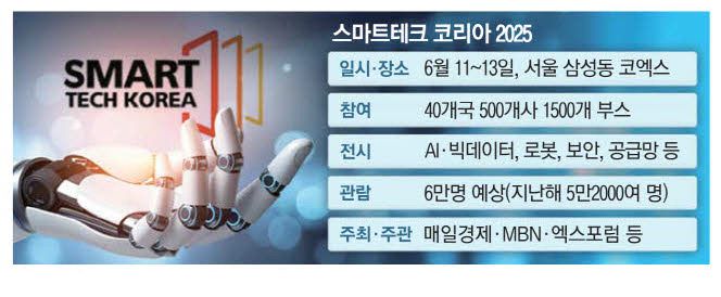 국내 최대 비즈니스 테크쇼 '스마트테크 코리아 2025'가 오는 11~13일 서울 강남구 삼성동 코엑스에서 막을 올린다. 매일경제·MBN·엑스포럼·한국인공지능산업협회 등이 주최·주관하고 한국소프트웨어산업협회가 후원하는 스마트테크 코리아는 올해 14회째를 이어나가며 명실상부한 대한민국 대표 정보통신기술(ICT) 전시회로 자리 잡았다.
