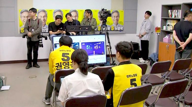 당 관계자들도 선거 상황실로 모였고요. 또 권영국 후보도 저녁 7시쯤부터 이곳에서 개표방송을 지켜보고 있습니다.