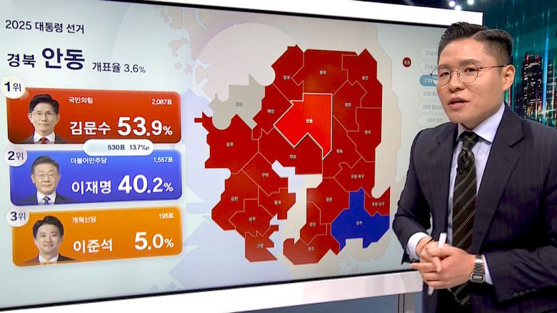 먼저 이재명 후보의 고향인 경북 안동시로 가보도록 하겠습니다. 안동, 다 아시는 대로 보수 텃밭입니다. 지난 19대 대선 때 안동, 당시에도 전 정권 심판 성격이 매우 강했음에도 불구하고 홍준표 후보가 거의 50%에 육박하는 지지를 얻었습니다. 그리고 바로 직전 대선에서는 윤석열 후보가 67% 이상 득표를 하면서 이재명 후보와 거의 40%P 가까운 차이를 보이기도 했던 곳입니다.