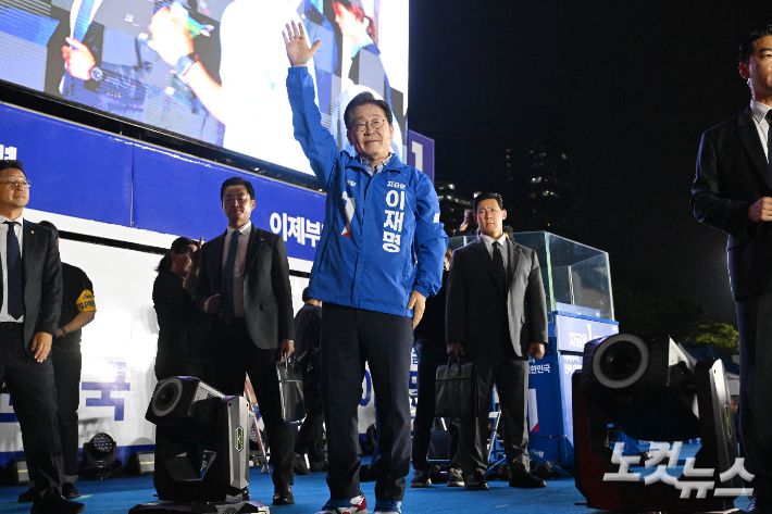 이재명 더불어민주당 대선 후보가 지난 2일 서울 영등포구 여의도공원에서 6.3 대선 피날레 유세를 하고 있다. 류영주 기자