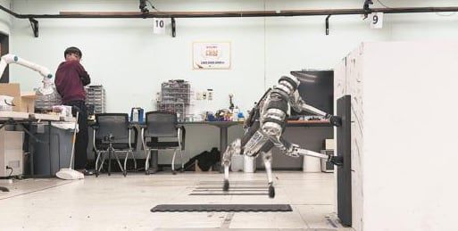 액션 영화에서 주인공이 벽을 디딤돌 삼아 뛰어오르듯, 네발 달린 로봇이 측면 벽을 박차고 앞으로 내달렸다. 이 로봇은 징검다리도 거침없이 건너갔다.