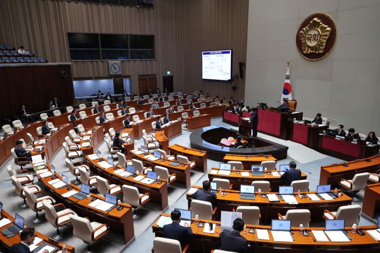 4월 29일 국회에서 추가경정예산(추경)안을 심사하는 종합정책질의 등을 위한 예산결산특별위원회 전체회의가 열리고 있다. (연합뉴스) |
