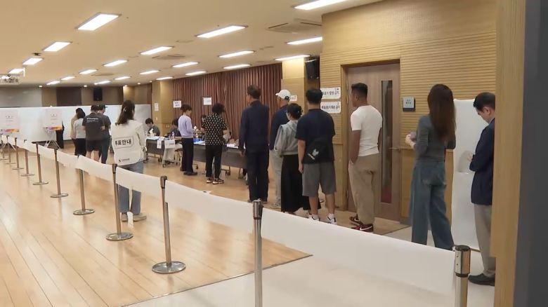 투표소 안에서 시작된 줄이 건물 밖으로 길게 이어졌습니다.