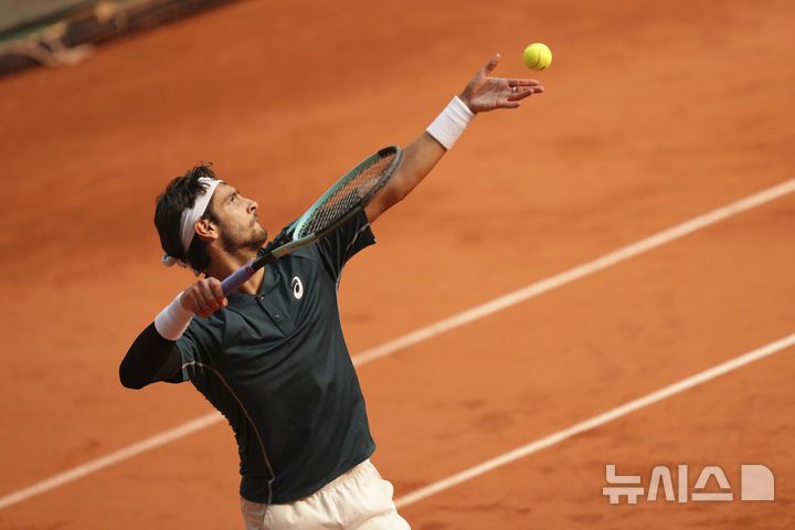 [파리=AP/뉴시스] 로렌초 무세티(7위·이탈리아)가 3일(현지 시간) 프랑스 파리 롤랑가로스에서 열린 프랑스오픈 남자 단식 8강전에서 프랜시스 티아포(16위·미국)와 경기하고 있다. 무세티가 3-1(6-2 4-6 7-5 6-2)로 승리하고 4강에 올라 2연패를 노리는 카를로스 알카라스(2위·스페인)와 맞붙는다. 2025.06.04.