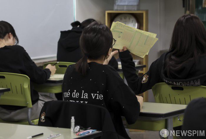 [서울=뉴스핌] 사진공동취재단 = 2026학년도 대학수학능력시험 6월 모의고사가 열린 4일 오전 서울 광진구 광남고등학교에서 3학년 학생들이 OMR카드를 배부받고 있다. 2025.06.04 photo@newspim.com