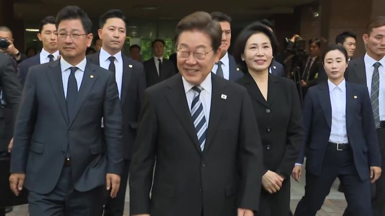 이재명 대통령, 경호인력이 굉장히 많이 있습니다. 경호인력의 경호 속에 뒤에 보이는 것처럼 김혜경 여사의 모습도 보이고 있는데요.