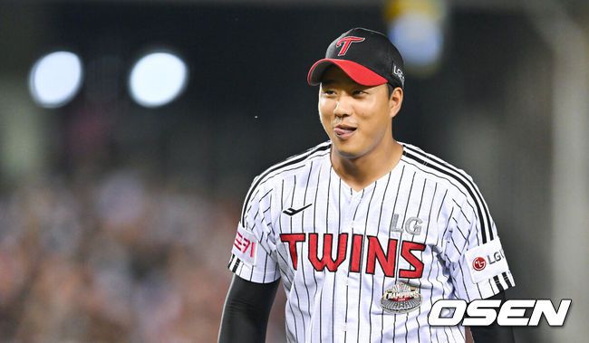 [OSEN=잠실, 박준형 기자] 25일 오후 서울 잠실구장에서 ‘2024 신한 SOL BANK KBO리그’ LG 트윈스와 한화 이글스의 경기가 진행됐다. 이날 LG은 최원태를 한화는 조동욱을 선발투수로 내세웠다.7회초 1사 만루 한화 노시환을 병살아웃시킨뒤 LG 정우영 투수가 아웃카운트 착각한뒤 미소 짓고 있다. 2024.09.25 / soul1014@osen.co.kr |