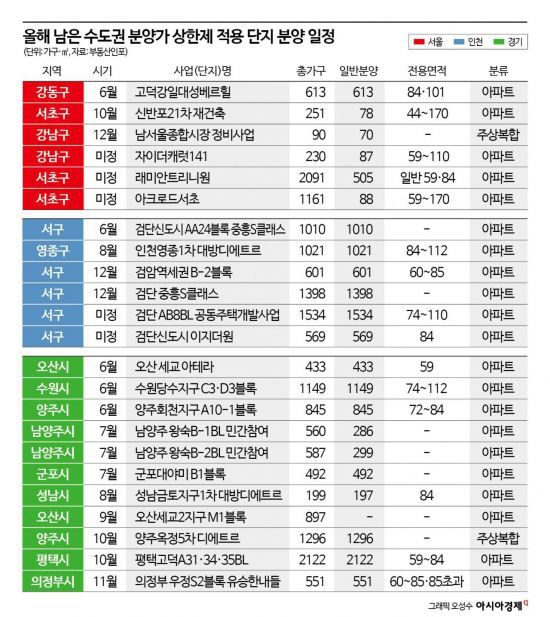 분양가 상한제 단지에 대한 청약 열기가 이어지면서 남은 물량을 미리 파악하려는 수요자 관심도 커지고 있다. 부동산 시장 분석 업체 부동산인포에 따르면 이달부터 연말까지 서울·인천·경기 등 수도권에서 분양을 앞둔 분양가 상한제 적용 단지는 총 23개 1만9700가구로 집계됐다. 이 중 1만5244가구가 일반에 분양된다.