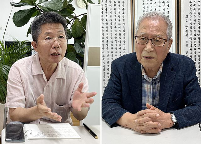 ▲ 정세현(오른쪽) 전 통일부 장관과 박인규 <프레시안> 상임고문. ⓒ프레시안(이재호) |