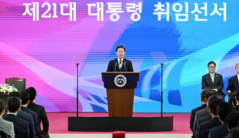 이 대통령은 이날 국익 중심의 실용외교 노선도 재차 확인했다. 이 대통령은 “글로벌 경제·안보환경 대전환의 위기를 국익 극대화의 기회로 만들겠다”면서 “굳건한 한미동맹을 토대로 한미일 협력을 다지고, 주변국 관계도 국익과 실용의 관점에서 접근하겠다”고 했다.