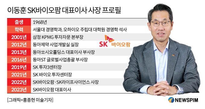 이 대표는 투자와 제약·바이오 업계를 두루 경험한 전문가다. 글로벌 회계법인 삼정KPMG를 시작으로 동아제약, 동아쏘시오홀딩스, 동아ST를 거친 그는 2019년 SK그룹에 합류해 바이오사업 관련 투자와 인수합병을 담당했다.