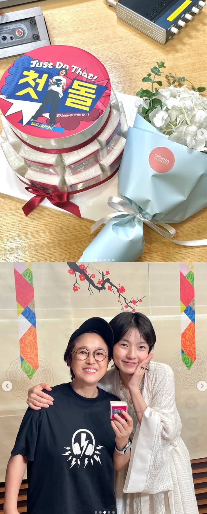 공개된 사진 속에는 안영미를 위해 준비 된 '첫돌' 떡케이크와 꽃다발이 담겨 있어 눈길을 끈다.