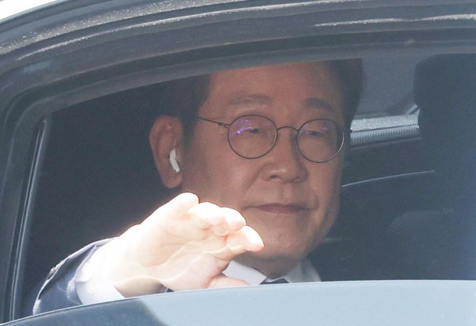 이재명 대통령이 4일 오후 서울 여의도 국회에서 제21대 대통령 취임선서식을 마치고 용산 대통령실로 이동하며 차 안에서 시민들에게 손 인사를 하고 있다. /사진=뉴시스