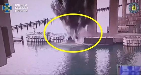 우크라이나 보안국이 3일 크림대교를 수중 폭파하는 영상을 공개했다. 우크라이나 보안국 제공 |