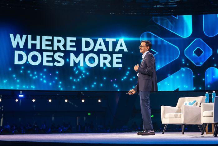 2일(현지시간) 미국 캘리포니아주 샌프란시스코 모스코니 센터에서 열린 ‘스노우플레이크 서밋 2025’에서 슈리다 라마스워미 CEO가 기조연설을 하고 있다. <스노우플레이크>