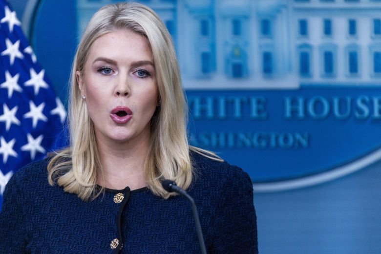 캐럴라인 레빗 백악관 대변인이 3일(현지시간) 백악관 정례 브핑에서 기자들의 질문에 답하고 있다. EPA연합뉴스