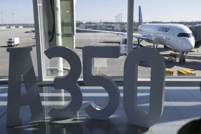 독일 남부 뮌헨 공항에서 에어버스 A350 항공기 간판이 보인다.(사진=AFP) |