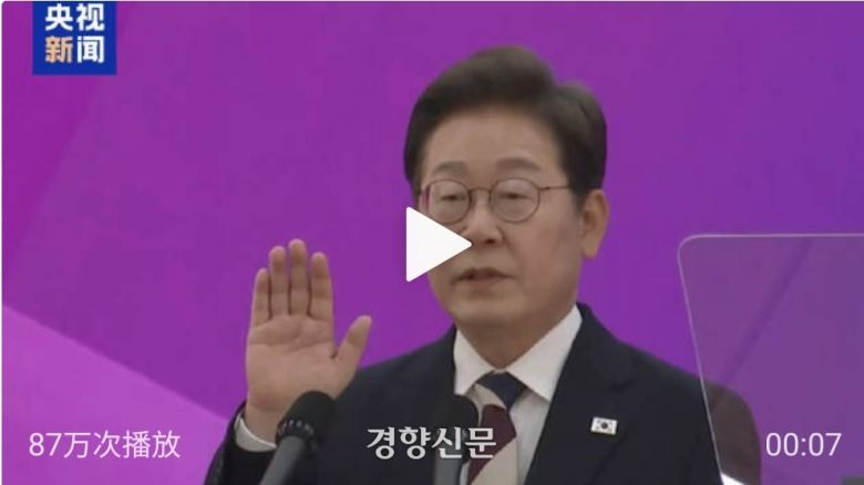 CCTV의 이재명 대통령 취임사 방송 장면 캡처. |