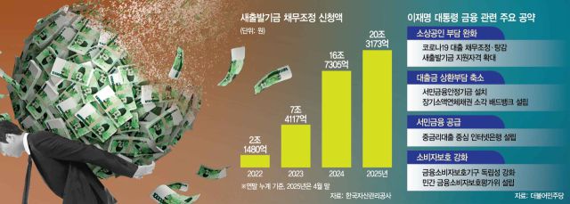 이재명 정부 출범에 맞춰 금융 당국이 장기소액 연체 채권을 소각하기 위한 배드뱅크를 한국자산관리공사(캠코)에 설치하고 새출발기금 지원 대상을 확대하는 방안을 추진하기로 했다. 불법 사금융 예방 대출 예산도 최소 2배가량 증액한다.