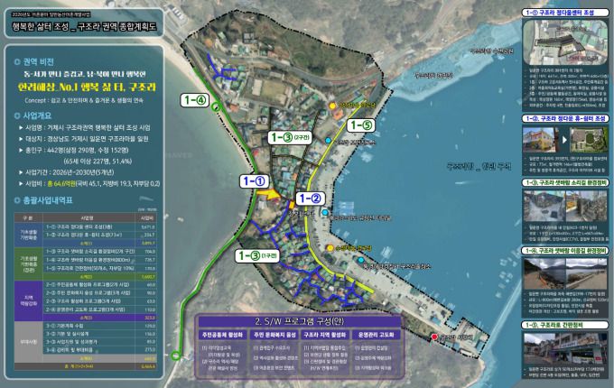 거제 구조라 권역은 복합 커뮤니티 공간과 안전한 보행환경 등을 조성해 모든 세대가 함께 이용할 수 있는 삶터 기반 마련에 중점을 둔다.