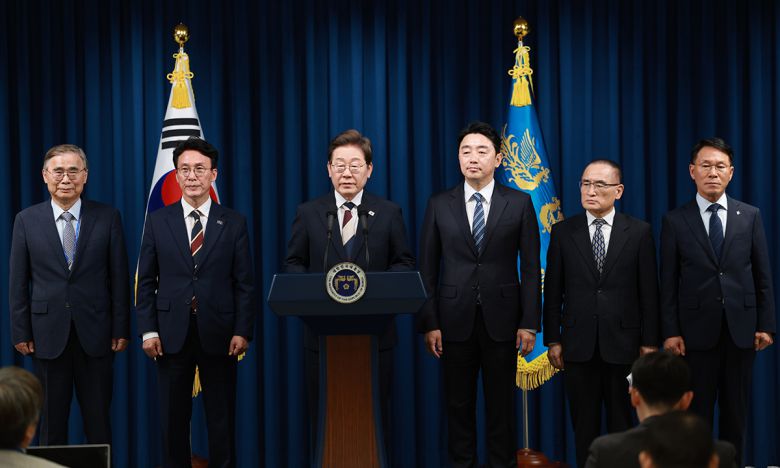 이 대통령은 이날 서울 용산 대통령실 브리핑룸에서 직접 기자회견을 열고, 국무총리 후보자·국정원장 후보자·대통령실 주요 참모진 등 초대 인선을 직접 발표했다.